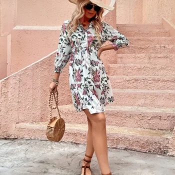 Introducing our enchanting "Random Floral Print Bishop Sleeve Shirt Dress" - a masterpiece tailored for the modern woman with an affinity for elegance and sophistication. Crafted with meticulous attention to detail, this dress boasts a captivating floral print that effortlessly merges contemporary style with timeless charm.