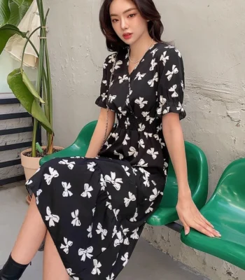 Introducing the HighIsabella Elegant Floral Dress with Bow at Neck, a timeless piece exuding grace and sophistication. Crafted to perfection, this dress combines the allure of delicate florals with a touch of feminine charm, making it an essential addition to any woman's wardrobe.