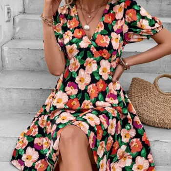 Introducing the enchanting "Women's Allover Floral Print Puff Sleeve Dress Liaoruay". Embrace feminine elegance with this delightful dress adorned in a captivating floral print. Crafted with exquisite attention to detail, its puff sleeves add a touch of romantic flair while ensuring comfort and style. Perfect for any occasion, whether it's a garden party or a brunch with friends, this dress effortlessly combines sophistication with a hint of whimsy.