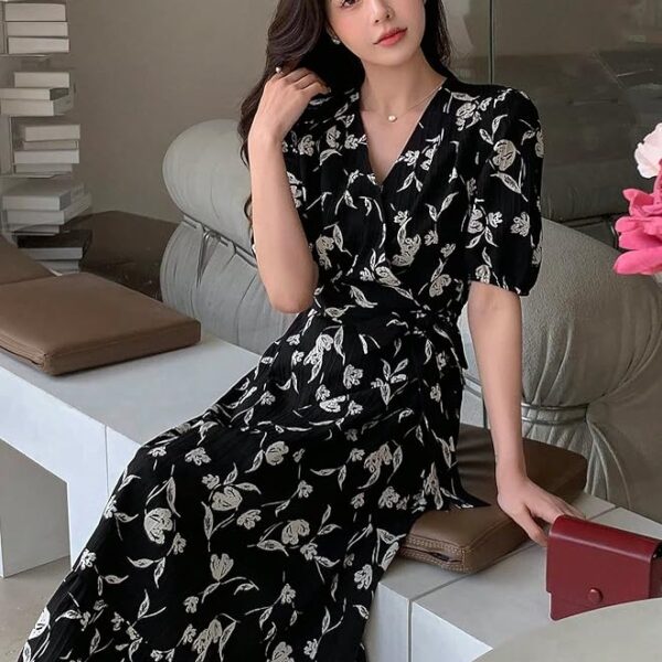 “Floral Print A-line Dress with Tie-Up” is a delightful blend of elegance and charm, designed to elevate your feminine grace. Crafted with a flattering A-line silhouette, this dress showcases a vibrant floral print that exudes freshness and vitality.