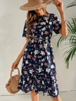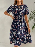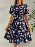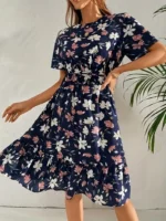Introducing our Floral Print Crew Neck Dress, the perfect addition to your wardrobe for spring and summer adventures! This vacation-ready short sleeve dress boasts a charming floral pattern that exudes femininity and style. Crafted with comfort in mind, it features a flattering crew neck design and is tailored to embrace your silhouette beautifully.